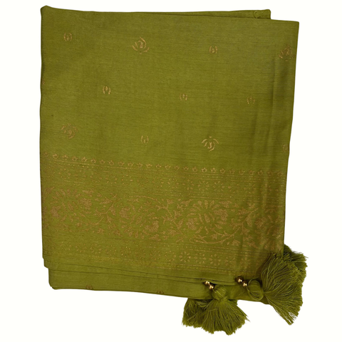 Illuminez votre look avec le Salwar Abilasha. La tunique en pure mousseline jacquard rose fuchsia, doublée en coton et ornée de broderies en fils dorés et de sequins, est accompagnée d'un pantalon en satin et d'un châle en viscose vert anis. Disponible en tailles 38 et 44, ce set offre une harmonie parfaite entre couleurs vibrantes et sophistication. Adoptez le chic audacieux avec le Salwar Abilasha.