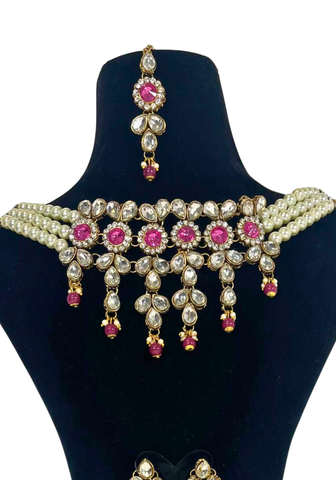 Ce bijou est parfait pour un mariage, une fête ou une réception. Son contraste entre les perles ivoire et les pierres roses apporte une touche romantique et féminine à votre tenue, que vous portiez un sari, un lehenga ou une robe de soirée.